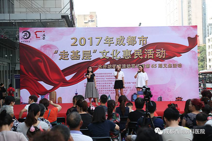 由中共成都市委宣传部主办,成都市精神文明建设办公室、成都市文化广电新闻出版局、成都市文学艺术界联合会承办,中共锦江区委宣传部、区文明办、区文体广新局、区文联协办,水井坊街道党工委办事处、锦江区爱游戏社区文化发展中心交子社区、成都西南脑科医院等单位共同举办的——2017年成都市“走基层”文化惠民活动昨天在水井坊街道完美落幕。