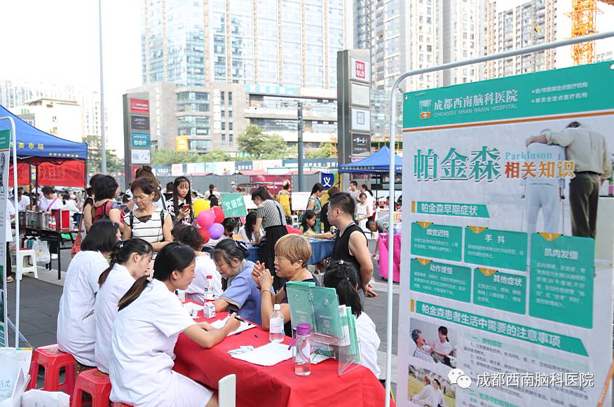 除了能够看到精彩的表演以外,成都西南脑科医院的医生护士们也到场展开了“健康养脑公益之行”的义诊活动,为社区的居民带来一份健康的“礼物”。