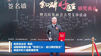 成都西南脑科医院先后获得由四川省预防医学会、成都商报传媒集团及成都商报四川医生联合颁发的“2019健康科普示范单位”、由崇州市怀远镇人民政府及成都电视台都市生活频道新闻中心联合颁发的“公益扶贫爱心单位”。成都西南脑科医院一病区程俊主任荣获华西都市报主办的第七届“榜样中国,我心中的医生”神经内科十大医生荣誉称号、成都西南脑科医院三病区肖安兵主任荣获成都商报主办的第七届“妙手仁心·金口碑好医生”神经外科十强荣誉称号……我们在荣誉中审视自我,并坚定前行。