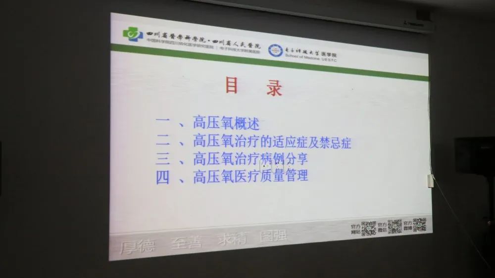 为增强我院医师对于高压氧临床运用基本知识的了解,加强科室之间互相交流学习,促进高压氧医学的临床发展,我院于11月13日上午在3楼会议室举办了“高压氧治疗的临床应用”知识讲座,由成都市高压氧质控中心医生主讲,我院病区、门诊医护人员近60人前来聆听此次交流讲座。