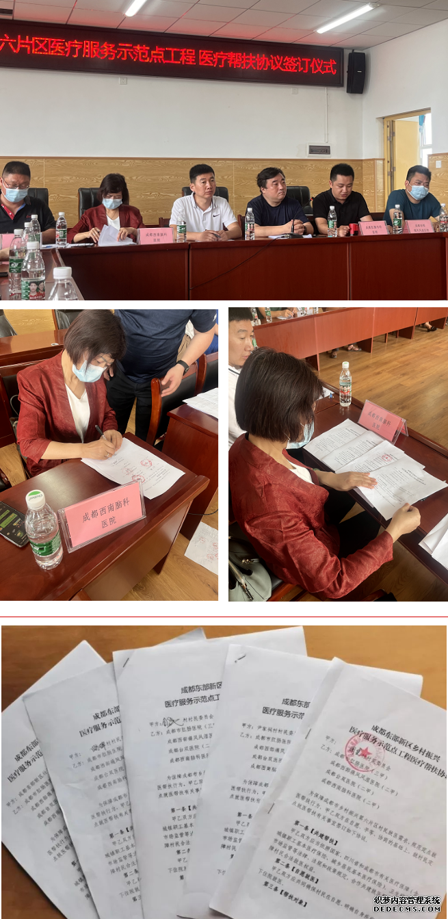 昨日(6月23日)上午9点半,【成都东部新区乡村振兴医疗服务示范点工程第六片区签约仪式】在东部新区周家学校举行,我院作为四家帮扶医院之一,与东部新区6个村的村代表、村书记共同签订了帮扶协议。